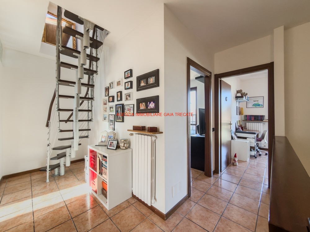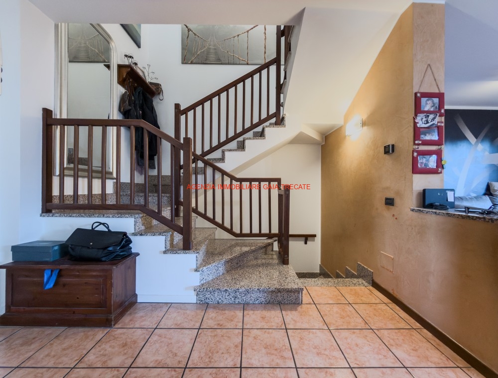 Trecate - ampia villa a schiera di testa, situata in una zona tranquilla e ben servita, ideale per famiglie con bambini grazie alla vicinanza delle scuole medie e alle elementari. Edificata nel 2009, l'immobile si sviluppa su tre livelli, offrendo spazi generosi e funzionali. Al piano terra, una taverna accogliente con locale lavanderia perfetta per momenti di relax o per ospitare amici.